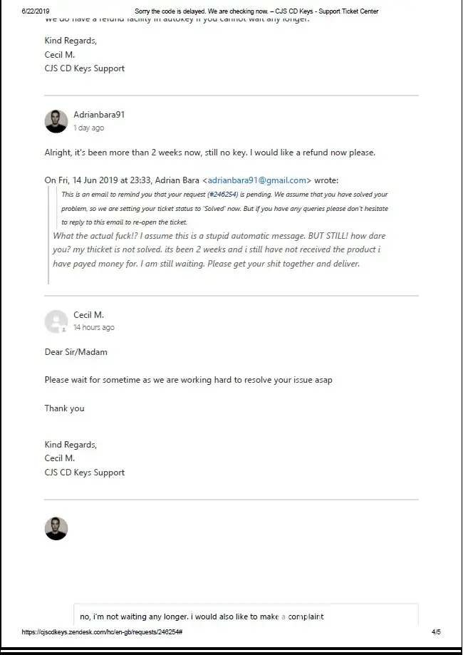 i bought the key on 5th of june. i'm writing this on 22nd of june, two and a half weeks later, and i still haven't received my key. I wrote to the support and it's completely useless. 0 transparency for once. Not even talking about the fact that i'm being replied either by a bot, or by a person who just copies/pastes some phrases back to me. this is ridiculous.