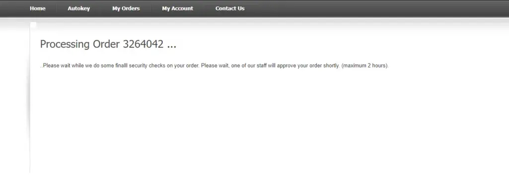 "..Please wait while we do some finalll security checks on your order. Please wait, one of our staff will approve your order shortly. (maximum 2 hours)."