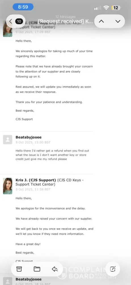 I purchased a 2-year, 3-device Kaspersky Antivirus license from [company name] (CJS CD Keys). However, after activating the key, I discovered that it was only valid for 247 days, which is far shorter than the 2 years I paid for. I immediately reached out to customer support, provided evidence of the discrepancy, and requested a full refund. Instead of...