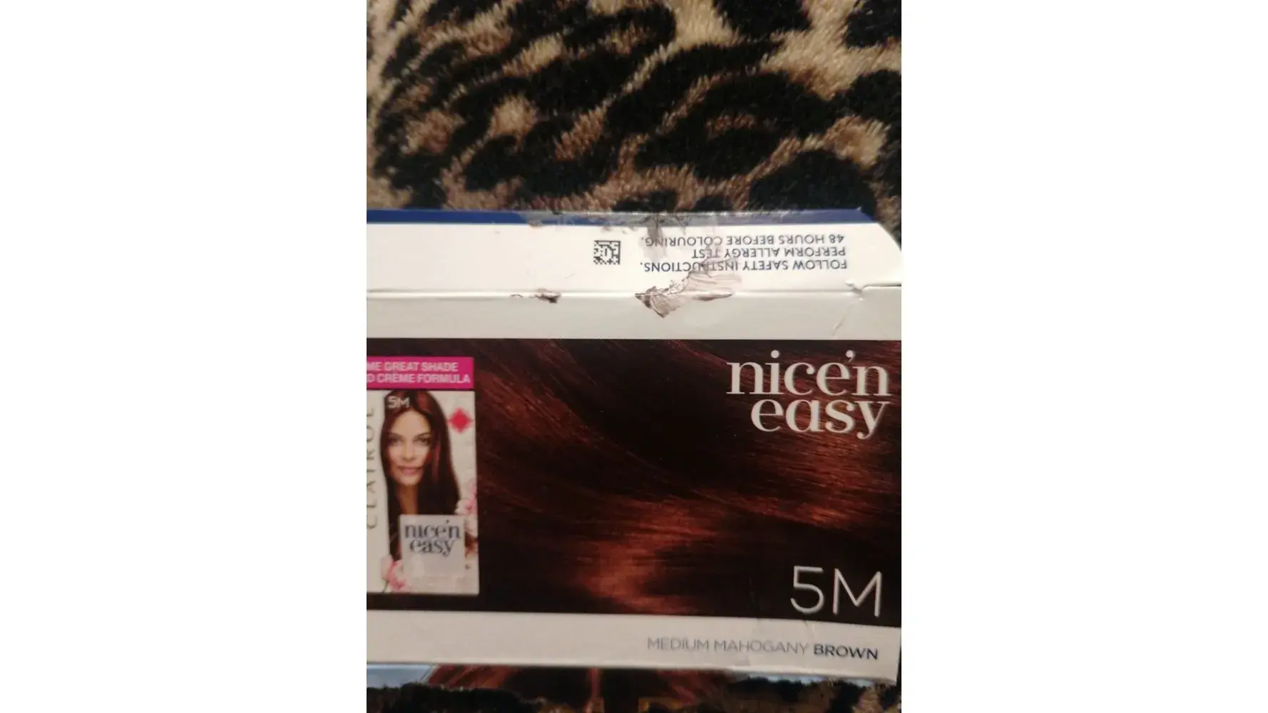 The colour I chose turned my hair black it was meant to be medium brown mahogany and now it won't budge, In the first picture you can see the outcome and the second the colour I chose with a little bit of the dye colour on the box lid, it clearly doesn't match which I know sometimes they don't but this has ruined my hair and unless I use bleach to strip it I'm stuck with it.