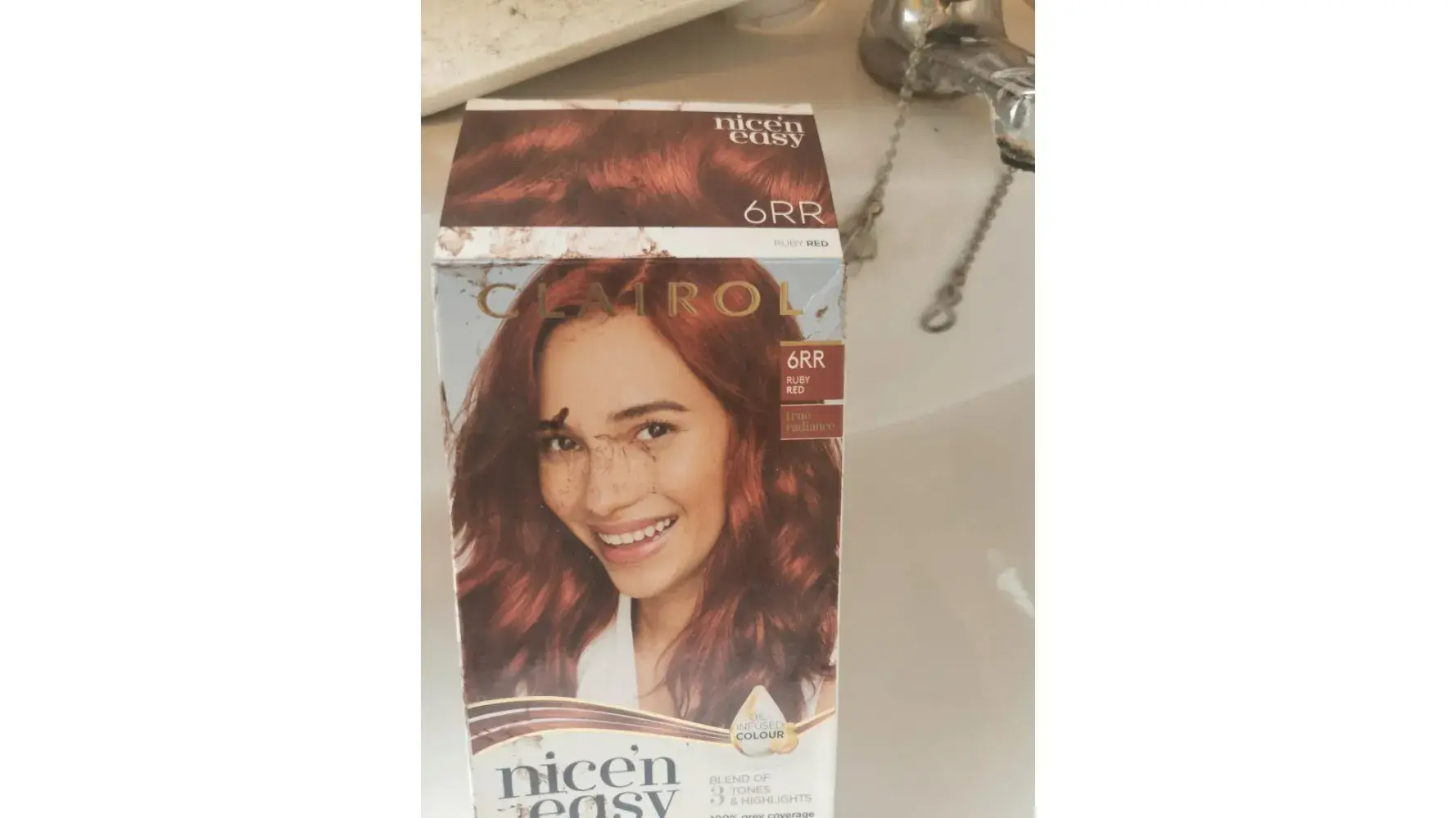 I bought clairol nice 'n' easy hair dye '5M medium mahogony brown' on the 16th Feb 22 and dyed my hair in the evening of the 17th Feb 22.