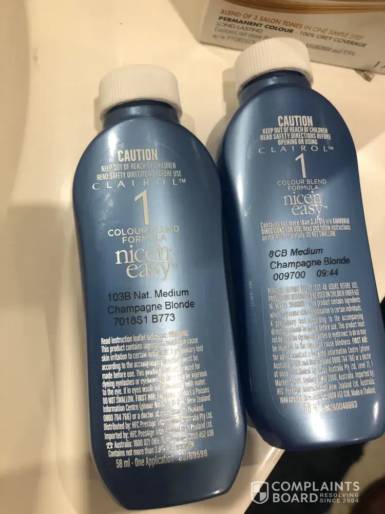 Just want to say how disappointed I am with using Clairol nice'n easy today. Purchased product 9.5A, bar code [protected] from Coles Redbank Ipswich Qld 8/7/2021. I am very familiar with this product as I used it for years when I was younger, have even toured the Clairol factory in NZ years ago. The colour I used today is nothing like what I expected, and am now thinking I will change to another brand and hair colour. Sorry to say goodbye to an old friend.
