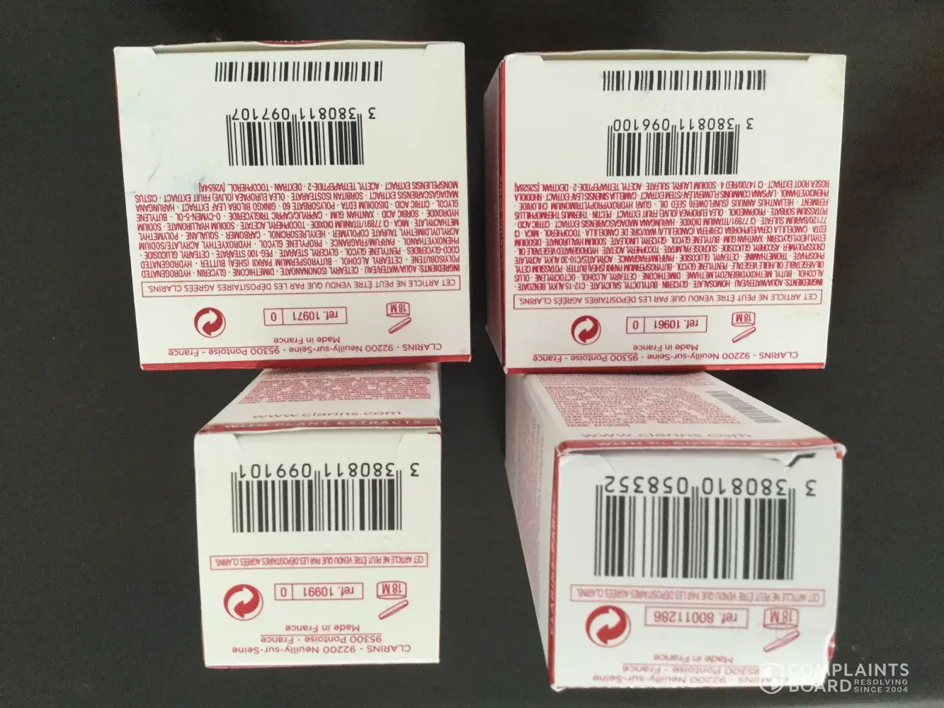 All products have been bought from clarins shops.