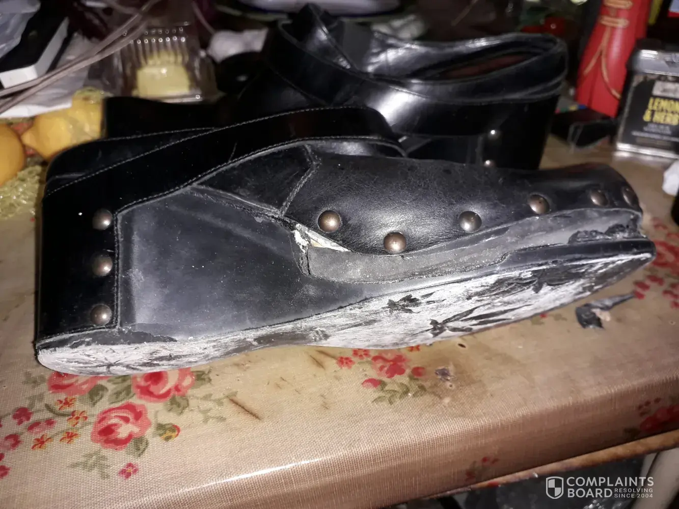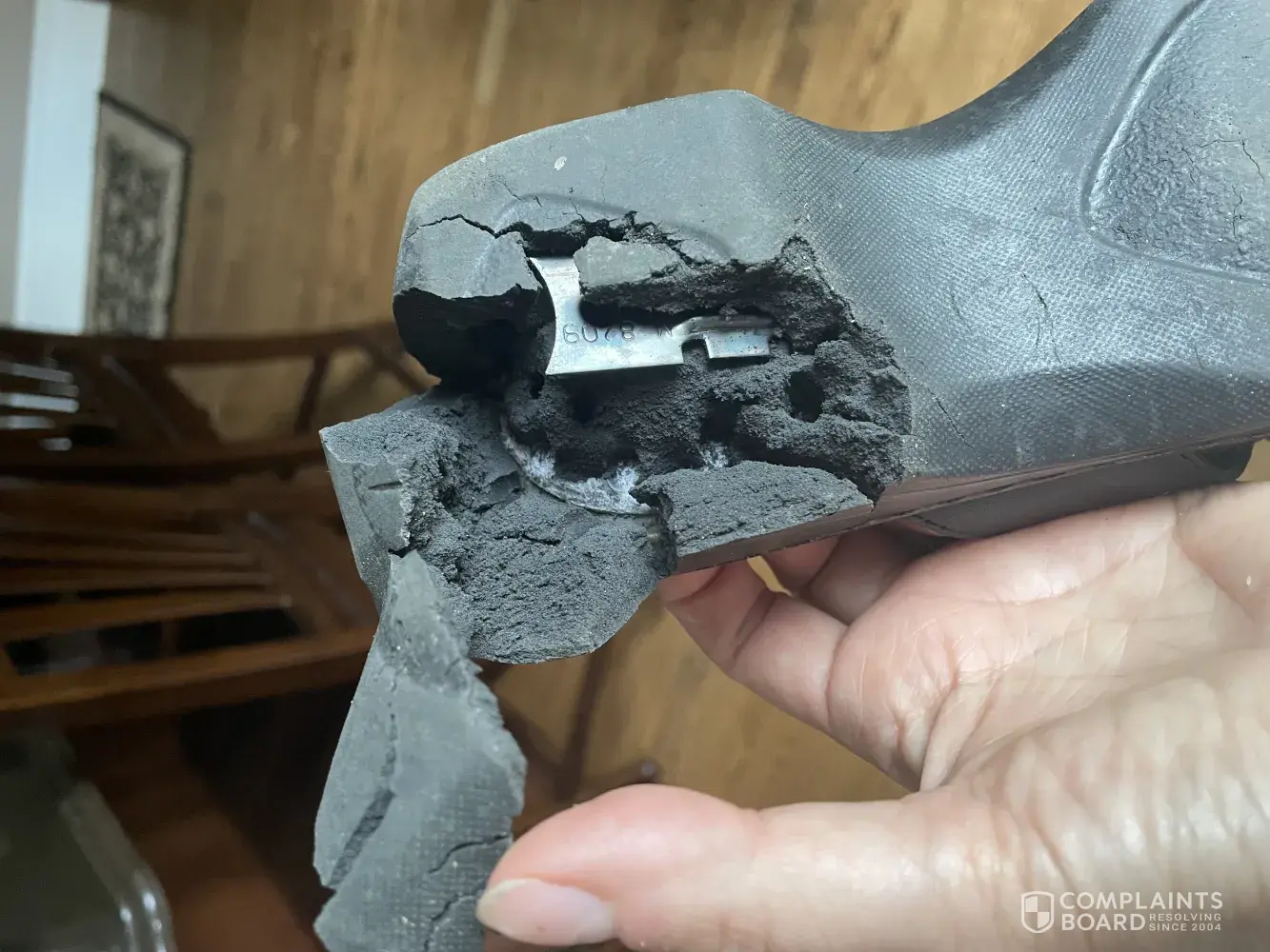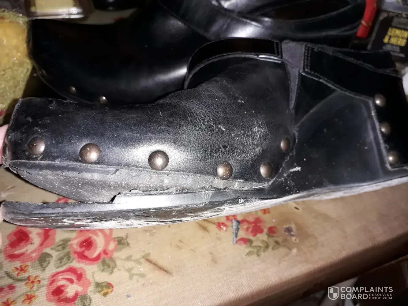 The pictures show the right shoe after the damage