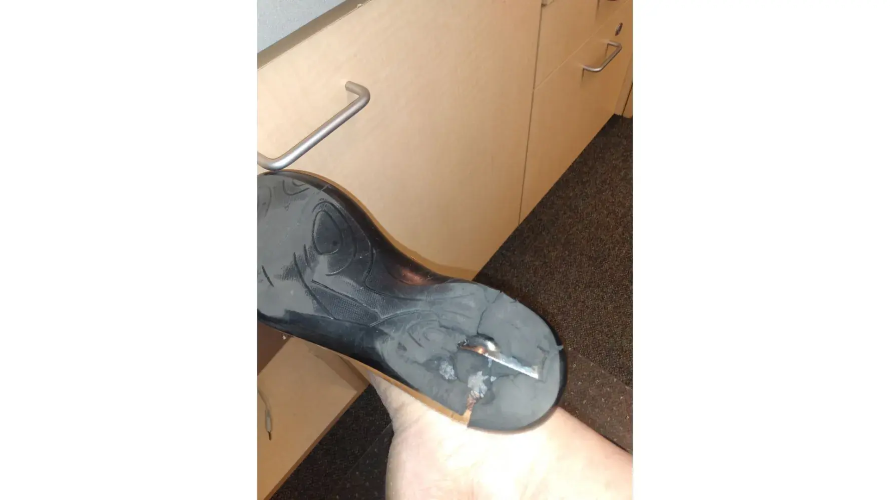 I had this happen to a pair of Clark’s I wore one time. I slipped them on in the car and when I walked into the house the left heel was leaking black rubber dirt all over my nice carpet And the right heel had a big crack starting the same mess