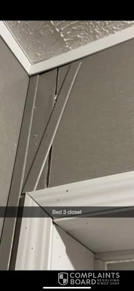 Mobile was ordered in feb 2023 and delivered on july 2023 and moved in in july 2023.Ever since july 2023 when mobile home was set up and moved in floor between joist dropped, ceiling cracks, molding falling off walls, electricy on one side of home flickers at no certain time on one side of trailer was promised ceiling fan but not recieved.dont know what more you want other than what was previously stated