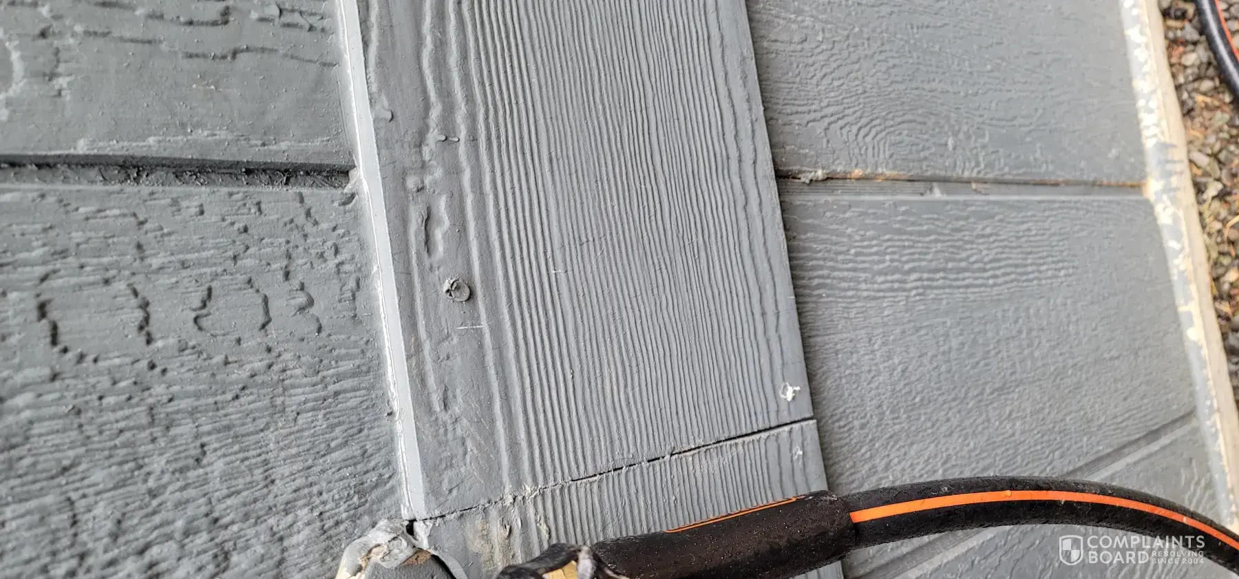 7. A slat on the side of the house is bowed and needs to be secured.