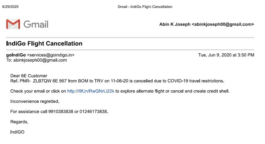 Due to the lockdown imposed we had to cancel the same as no flights operated from dubai and none were allowed to touch down at delhi airport.
