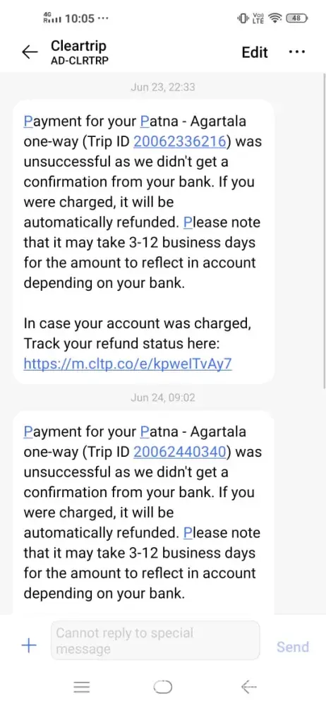 So I am asking how incompetent is the clear trip department that they process for one and not the other. They also do not care about customer service - have standard responses - sorry for the inconvinence. We will get back to you.