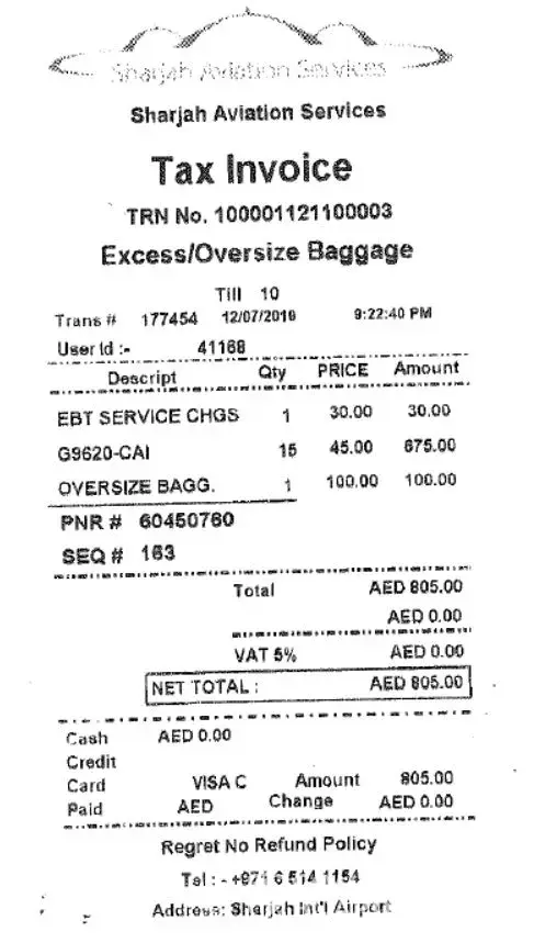 after a lot of negotiations they told me that your tickets are fake and only 20 kilos allowed for me & because of you i paid 805 AED as Extra weight (TAX Invoice attached).
