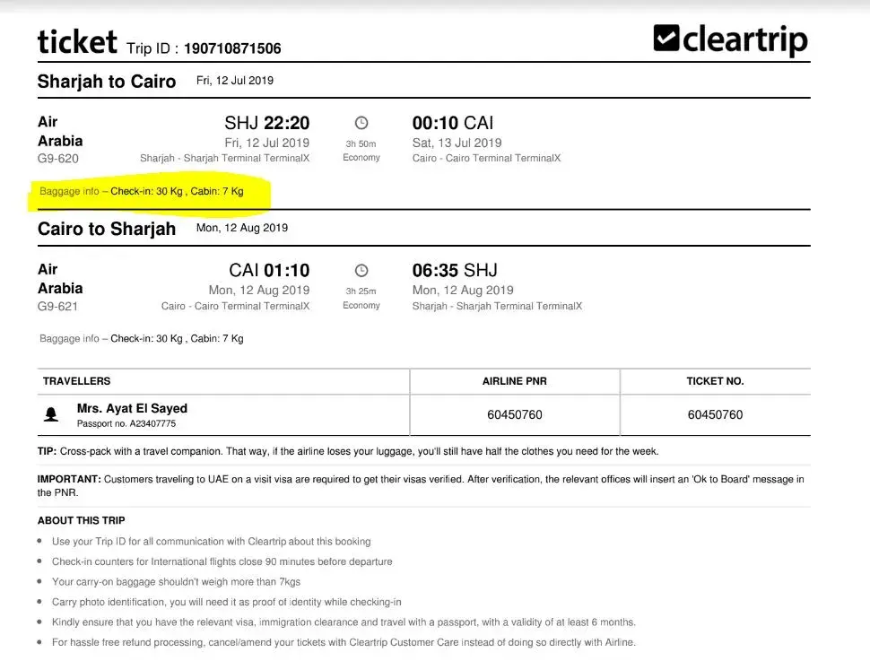 My name is Ayat, i was having a flight two ways Shariah -Cairo- Shariah with dates :