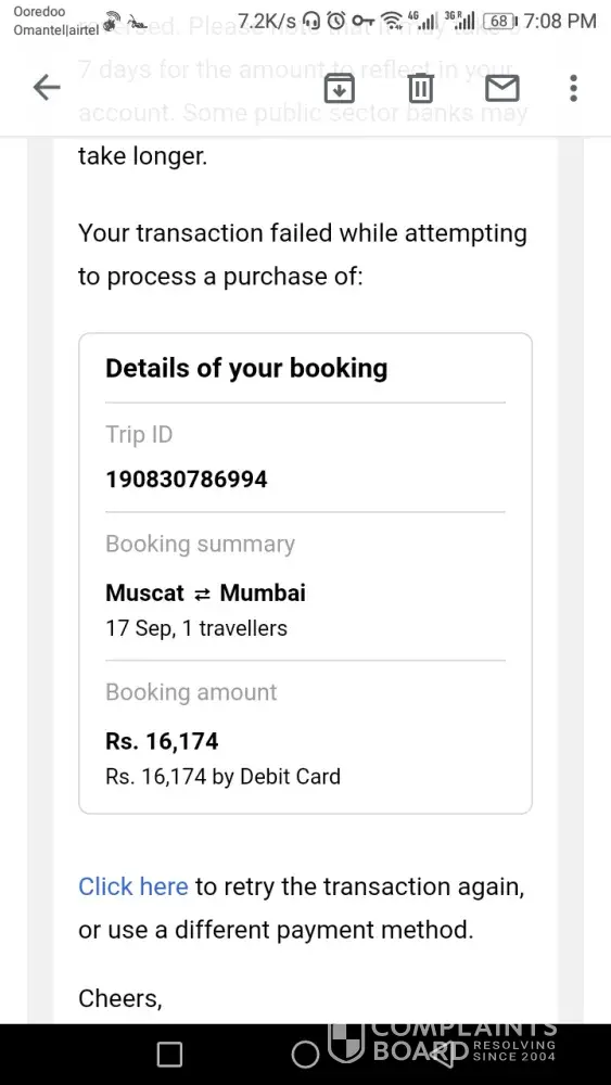 refund not received for bd.320/- trip id no.[protected]