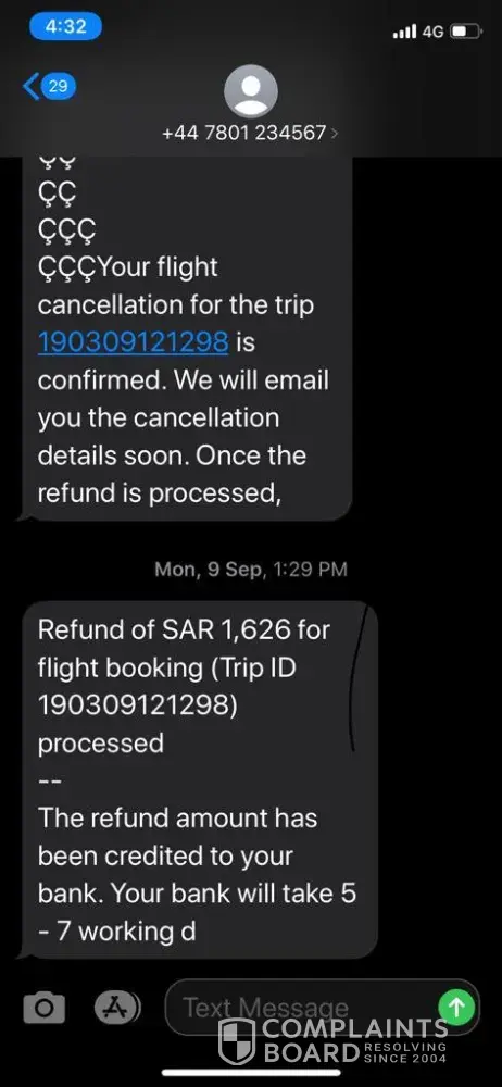 And so i reached out to them in sep-2019 and i again received a SMS saying 1626 SAR is refund is processed and will be credited to your account in 5-7 working days.