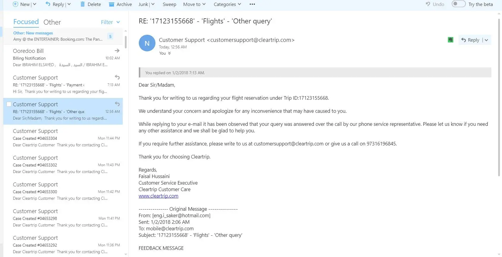 Secondly, I have written multiple emails to cleartrip customer care but have not received any response to all my emails nor any revert from their front.