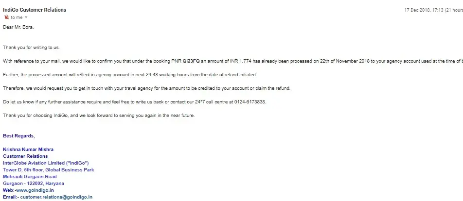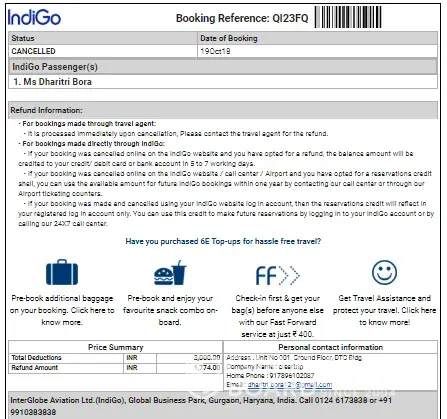 My flight canceled by airline and Indigo representative also call me and confirm me that they will fully refund my amount, Kindly do the needful as soon as possible, and refund my full money, Attached confirmation mail from the indigo airline.