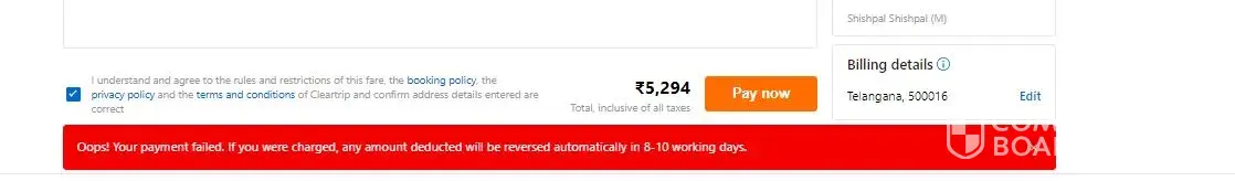 Stay away from cleartrip. you will loose money. the most un reliable web site. they charge you for failed bookings also.