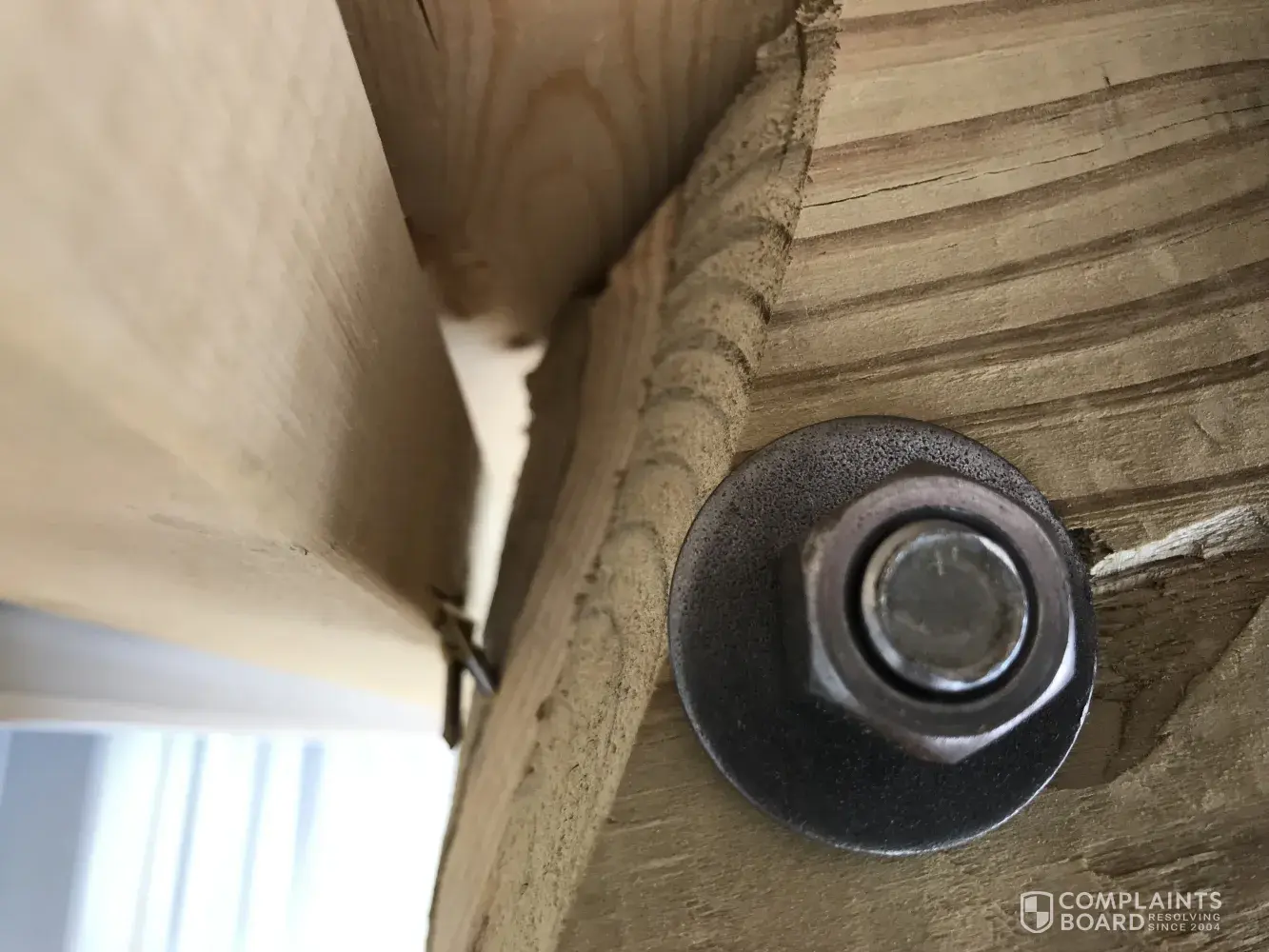 Late August or early September I contacted NFBA and then Cleary came to do a another patch job on the trusses 3 men show up with 1 2x4x8 and 1 bolt and 2 L brackets to reinforce the roof from uplift do to main post being cut off to short I had to wait there for well over a hour wile two men went to get more bolts L brackets and 1"screws