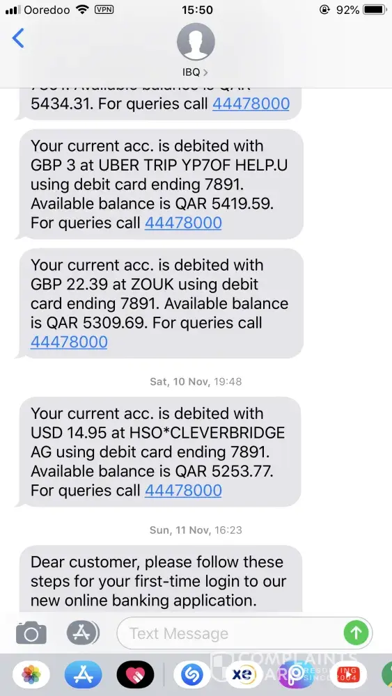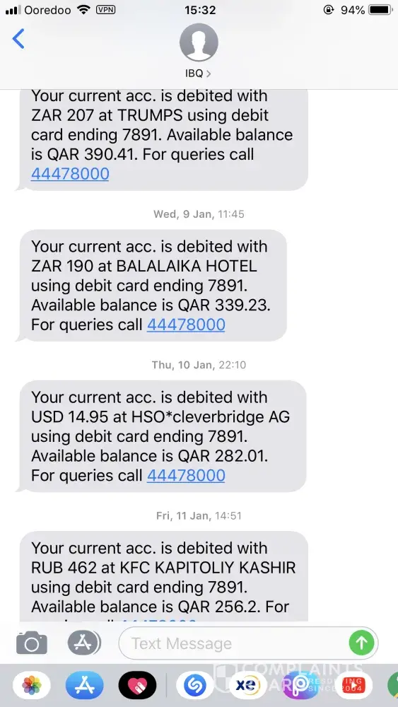 Unauthorised credit card charges