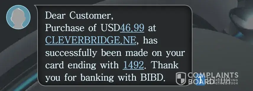 & 10th january 2018 with usd 14.95 on my card and it says "at hso* clever bridge ag using my debit card"