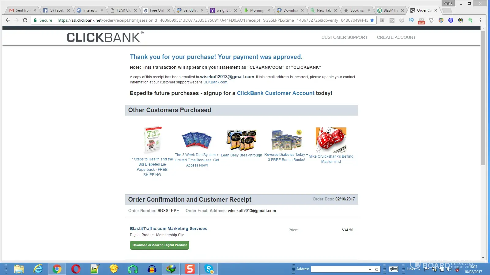 I wish to apply for a refund for his product BLAST4TRAFFIC as I realise it is not serving its purpose. I bouught it on 02/10/2017 at $34.50 with the email address [protected]@gmail.com. The order number is 9GSSLPPE. I am from Ghana, and also a clickbank affiliate. Please alert and update me on how I can take back my refund i order to invest it in other traffic sites. Thank you.