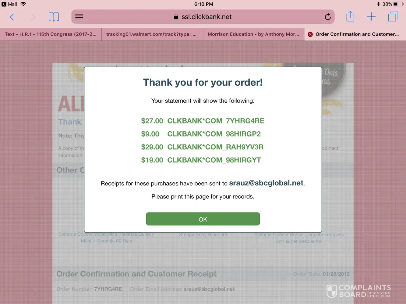 I placed an order and I was told that I would receive my order confirmation in my personal email [protected]@sbcglobal.net, but I didn't receive anything! My order confirmation is 7YHRG4RE. Purchase date 1/28/18. I need to know what kind of people are you, scamming honest people, like me that believed everything the advertisement said. All I wanted was to better myself by learning what was the "good food that I'm supposed to eat to help me lose weight".