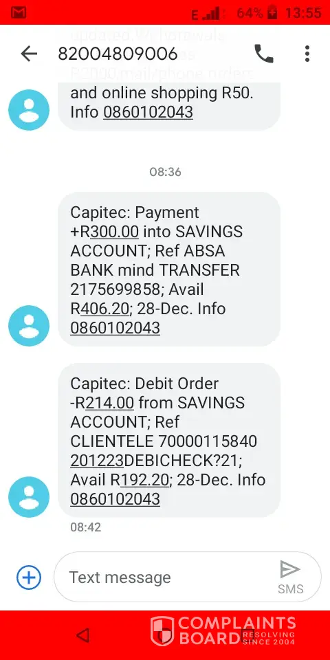I do not have any policy with Clientele and never confirmed any debit order for clientele. But i was suprised when i recieved 2 messages from my bank showing i had paid 2 debits to clientele on 2 different policy numbers. Since i never confirmed any debit order for clientele, this can possibly mean clientele accessed my third parties without my knowledge and my consent, i would then request clientele to repay all the amount back to my account before the end of today.