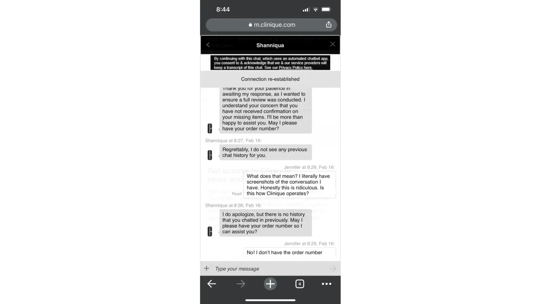 I really hope that Clinique.com can get their act together and fix these issues soon. As a loyal customer, I deserve better treatment than this. I'm not asking for the moon, just a simple solution to my problem. Until then, I'll have to think twice before making any more purchases from their website.