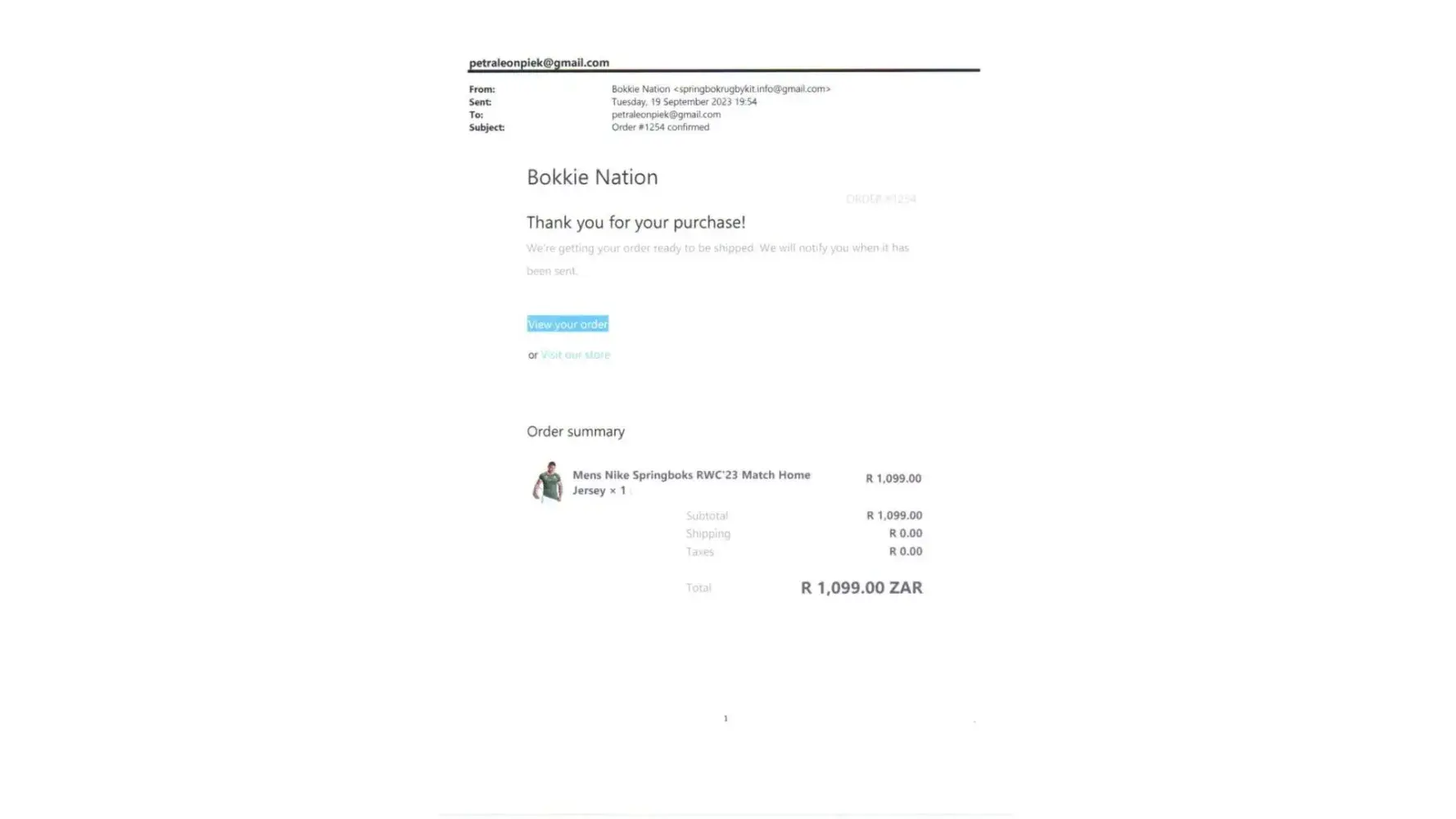 Bokkie Nation - Rugby jersey ordered and not being delivered.