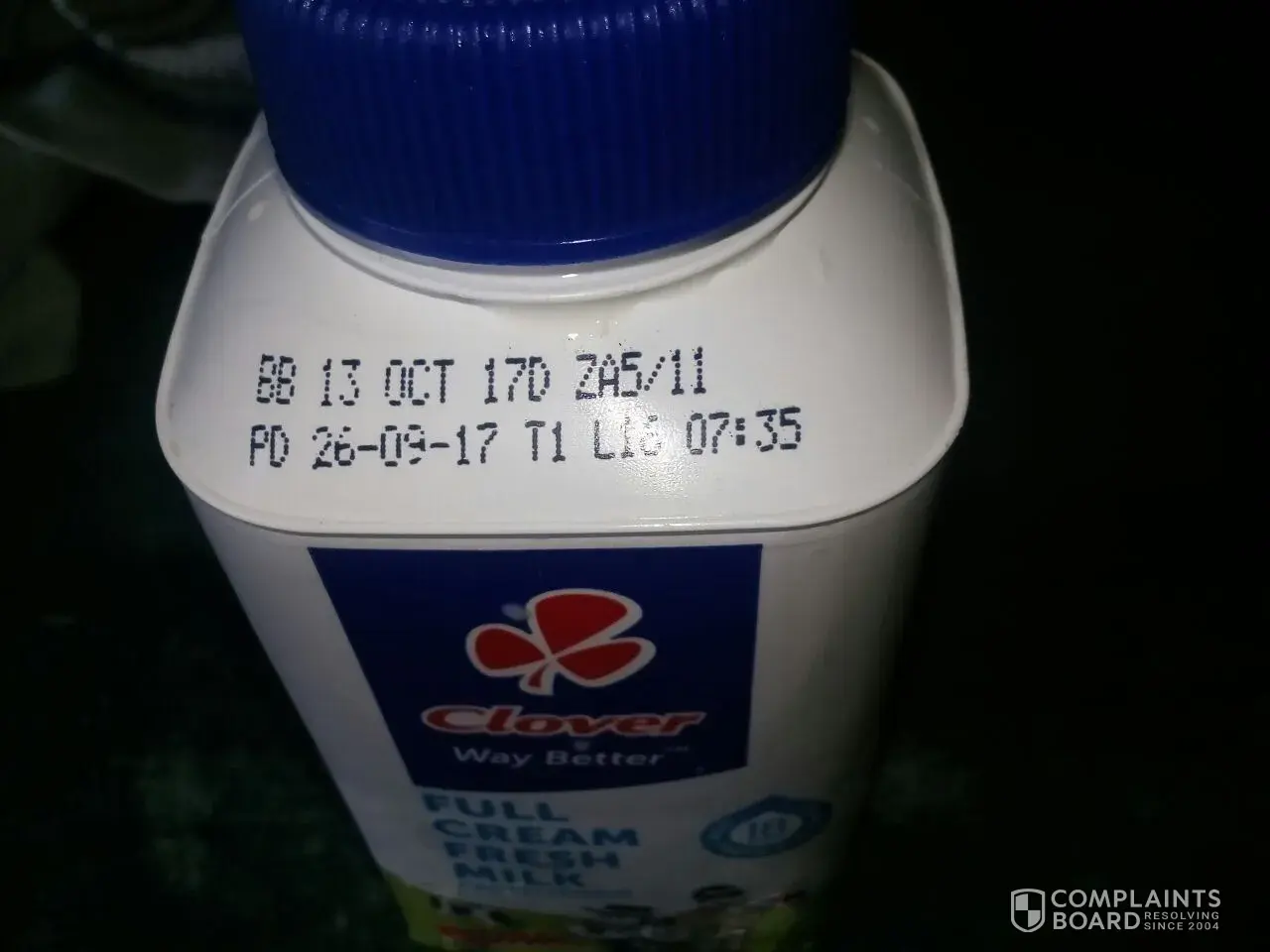 I bought a 2 x 2Ltr milks last week 7th September 2017 with an expiry date of 12 September 2017 at Checkers hyper Kenilworth - get home to make a cup of tea and the milk is sour - i smell the other 2 Ltr bottle and it was sour too, i had to toss 4 Ltrs of milk away and run back to shop to get more milk. i find this totally unacceptable as clover is a well known brand milk is not the cheapest !