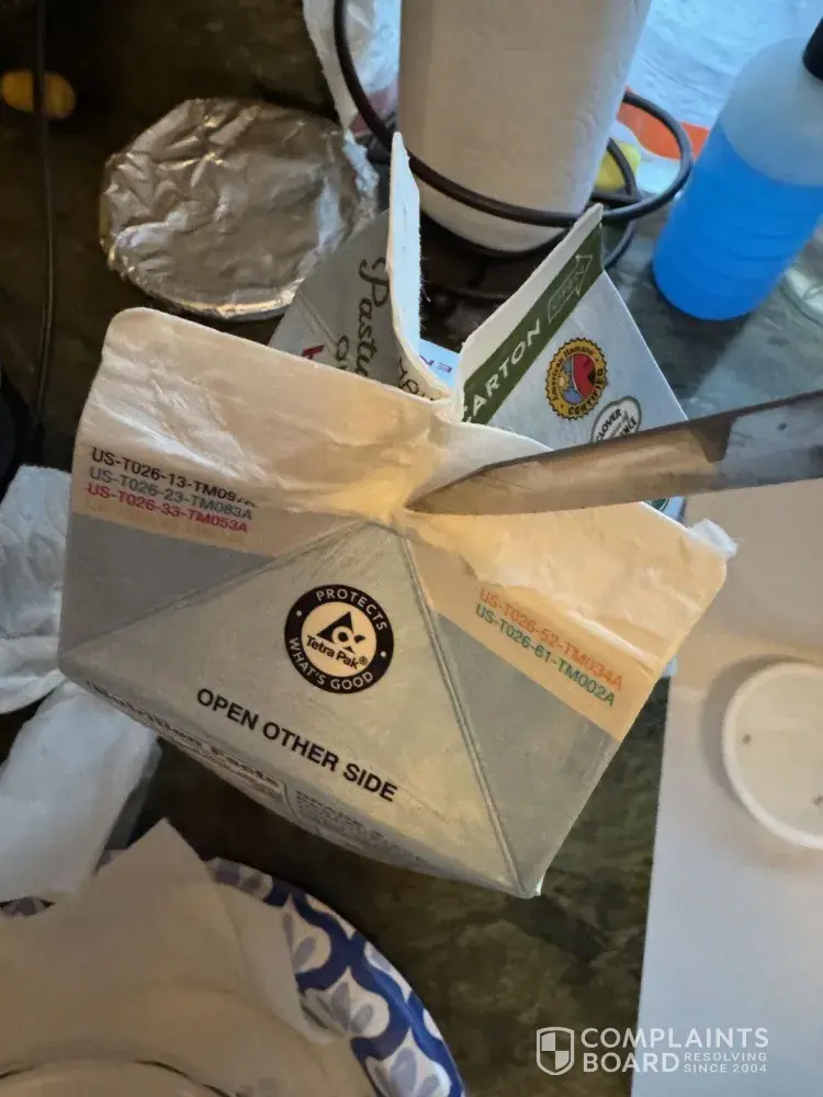 I buy every single month 4 boxes of clover milk from shoprite this month 2 six packs of milk the pouring spout has been broken off and we are forced to use the milk from the bottle and it messes everywhere is this your way of us having to buy extra milk?