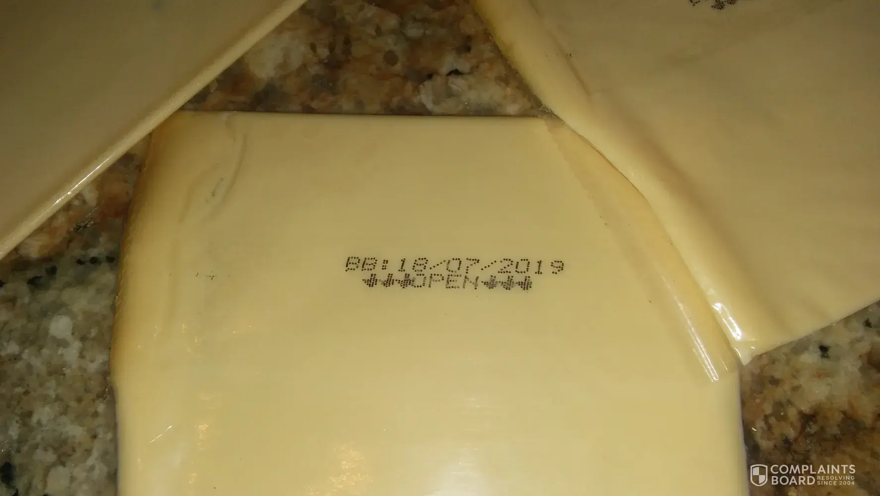 Clover Gouda and Cheddar wrapped slices 900g (54), I regularly buy these products and to my disappointment, the last 2 that i purchased have a piece of black substance in them (rust ), the edges are not sealed and hardened the cheese that has seeped out, and this is in most of the pack of 54.