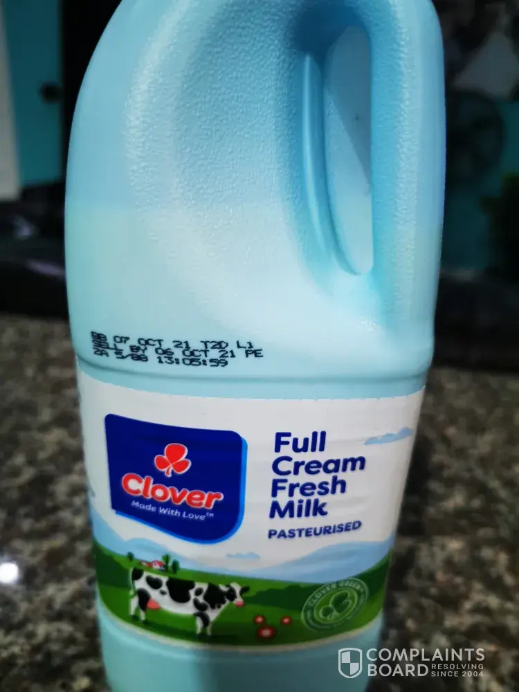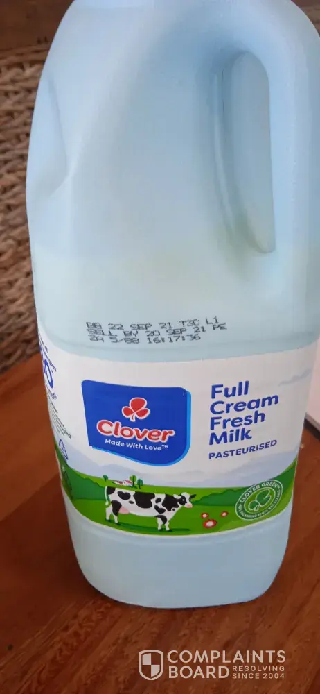 I bought two bottles of full cream milk at The Rose shop at the Engen garage. Expiry date is the 27th of Aug 2021. It has not been the first time buying sour milk. I am not sure if the packaging has an effect. Go back to white bottles and the recipe that works. I can smell a shortcut a mile away. Clover has always been my brand. Please look into it