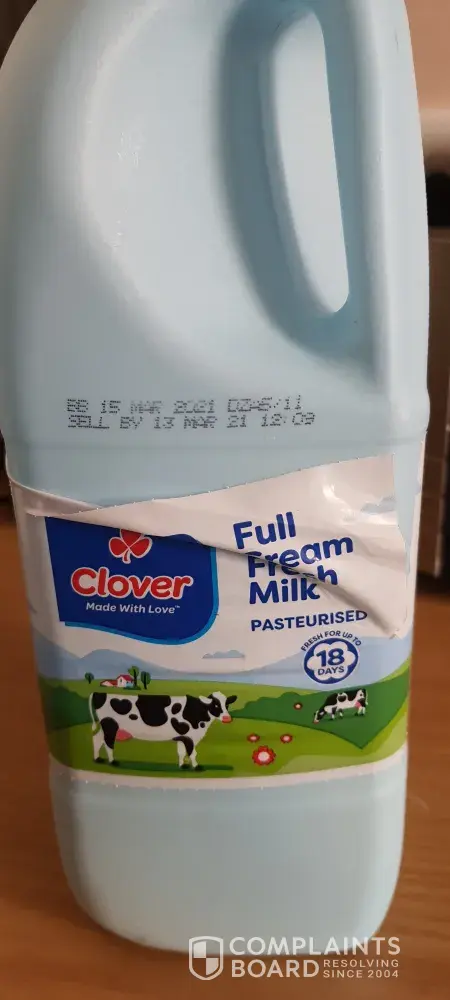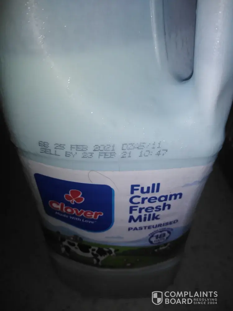 Clover Bought milk 2l yesterday 25 Feb 2021 today 26 Feb 2021 its sour.
