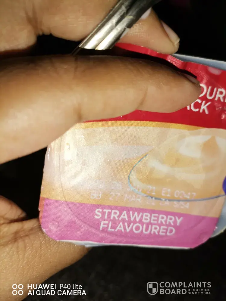 The strawberry flavored yogurt was white in color with streaks of pink, and tasting very odd. I am so glad I opened to eat as these were bought for my two and three year old kids.