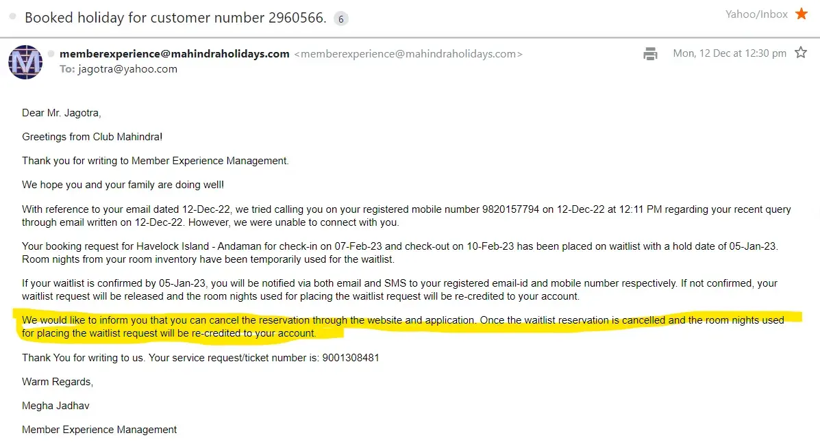 [protected]@clubmahindra.com, but no one bothers to respond to my emails.