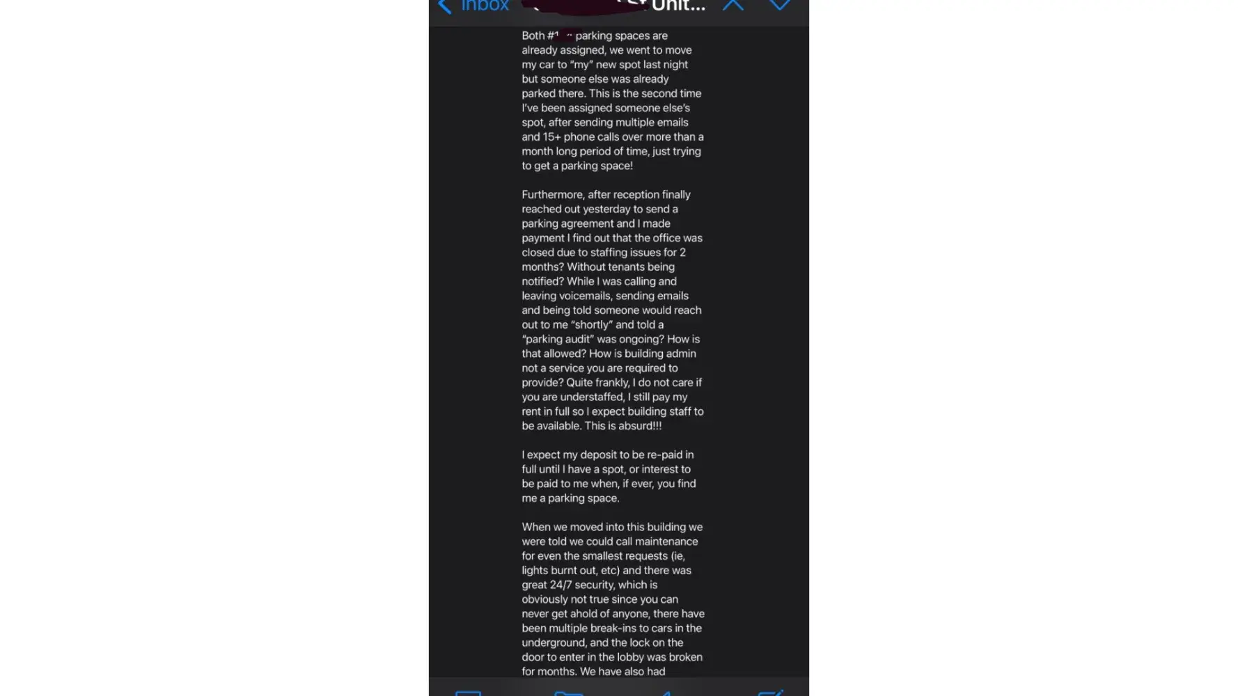 2) they hired a crappy company to redo the balconies and boarded our patios for 5months despite not being ready to do the work. Workers were so slow during peak summer months that now they are rushing to get the other side done before -30 temps hit