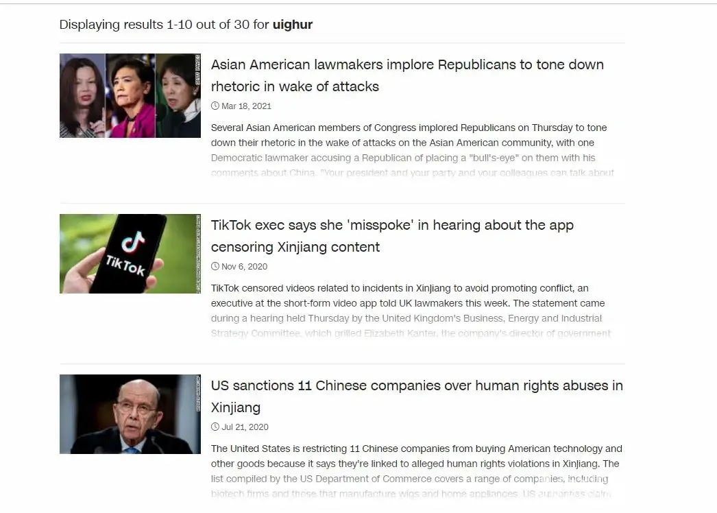 I searched the term Uighur on CNN's website and only found 30 articles the latest of which was today the next was on Nov. 6, 2020 and the term Uighur was used once and only as a side note on a background issue.