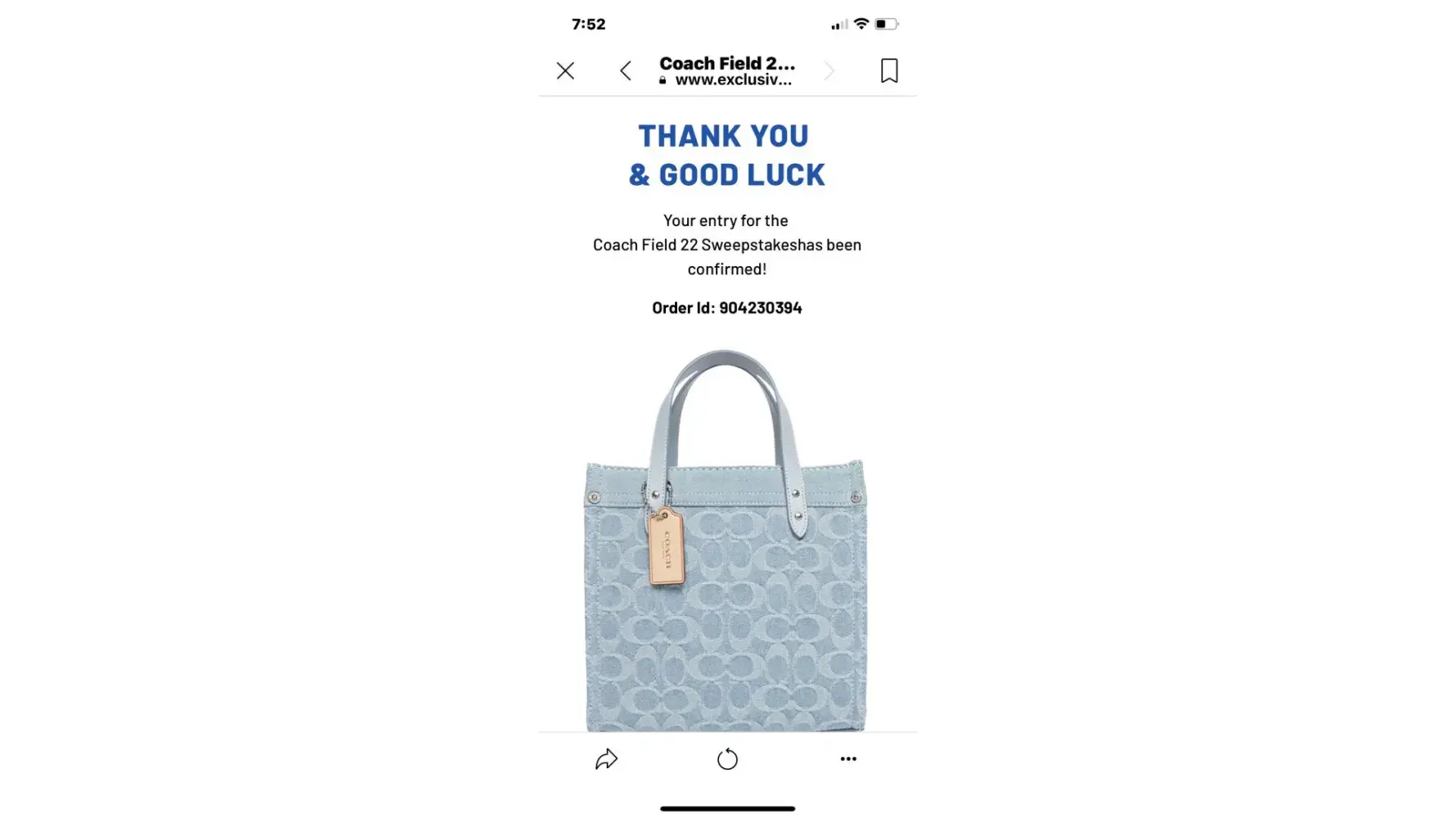 On Saturday July 1,2023 I entered a sweepstakes for a coach bag. This is not something that I’ve never entertained before. Against my better judgement I entered and I was told that I had won a coach bag. I was given a order ID # [protected]. And I was told I only needed to pay for shipping of $5.95. My bag would be shipped out in 2-3 days. I was told that all I needed to do was pay the shipping and sit back and wait for my bag to be delivered. I’m still not sure that this was not a scam but the $5.95 I paid was wirth the risk to recieve one if your bags. If you can give me some clarity I would greatly appreciate it.