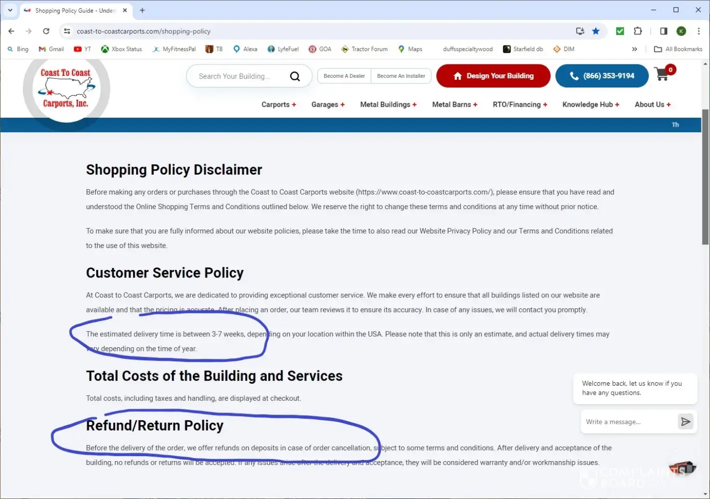 Overview of Coast To Coast Carports complaint handling