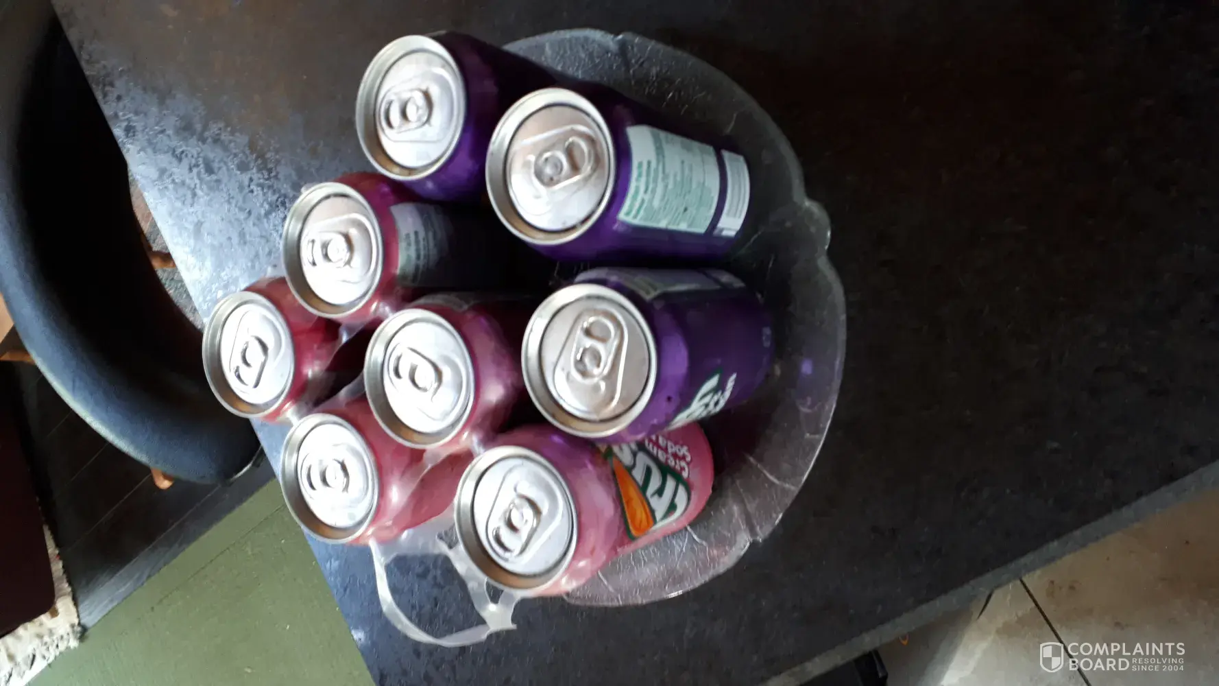 We bought a brand new mini fridge to take with us vacation. When we got at our destiny and wanted to get something to drink, grabbing a coke from the fridge we noticed this black stuff on our hands. When we opened the fridge again, we see that not only is it on every can but all over the inside of our new fridge. I immediately went to clean the fridge by removing all of the cans but it wouldnt come off easily. So I litterally had to scub this stuff off w a magic eraser. It still left small marks. I put paper towels down to help protect the fridge but when we arrived home, I found the fridge again destoyed by this residue. The pictures will show you the gross stuff that came off of these cans. Not only did it leave marks in the fridge again, what we saw was disgusting to think we were drinking this product. I tried to include pics of the bar code and the info printed on the carton so you could possibly research this and correct it. We feel we should be reimbursed for product and damage to the fridge.