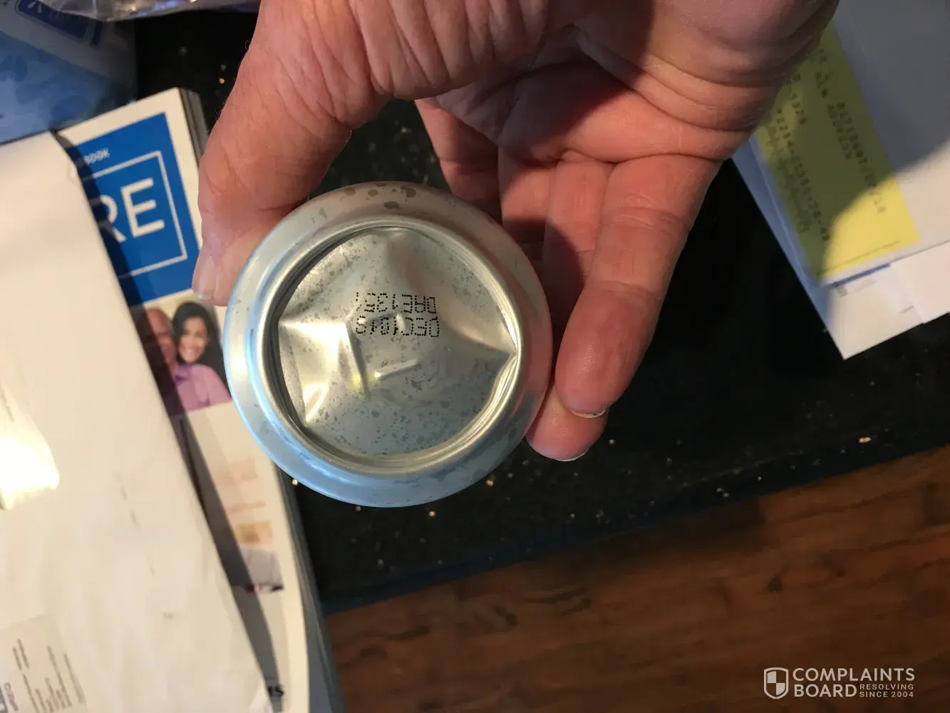 defective coke cans and jelly substance inside.