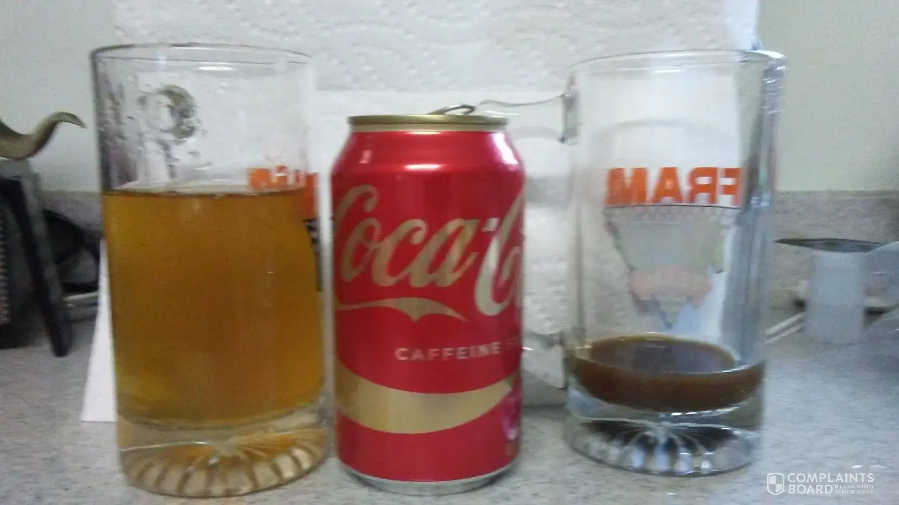 Opened three cans out of a 12 pack that contained a very pale liquid until the remaining 1/4 can was emptied ;this was a dark colored sludge. Other cans were okay, though we have one can left. Have never had an issue all the years of drinking coke. My husband tasted it and promptly spit it into the sink-didn't smell like coke either.Would be very interested to know what wss in those cans.