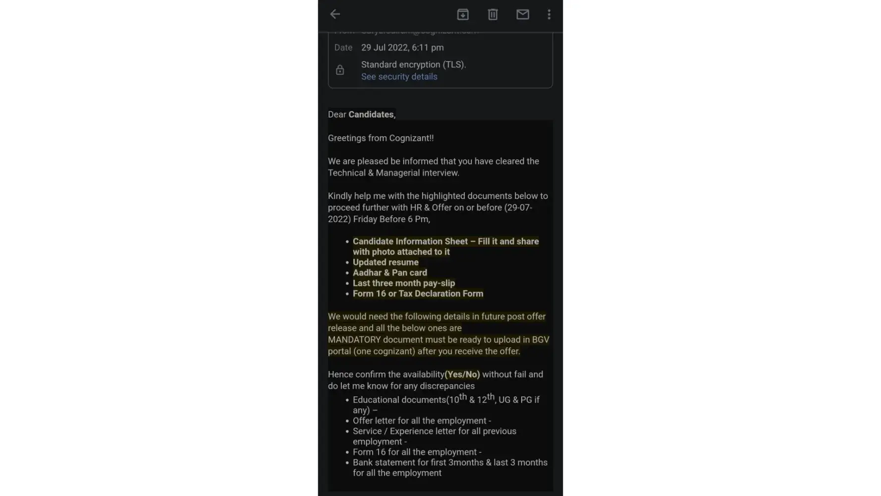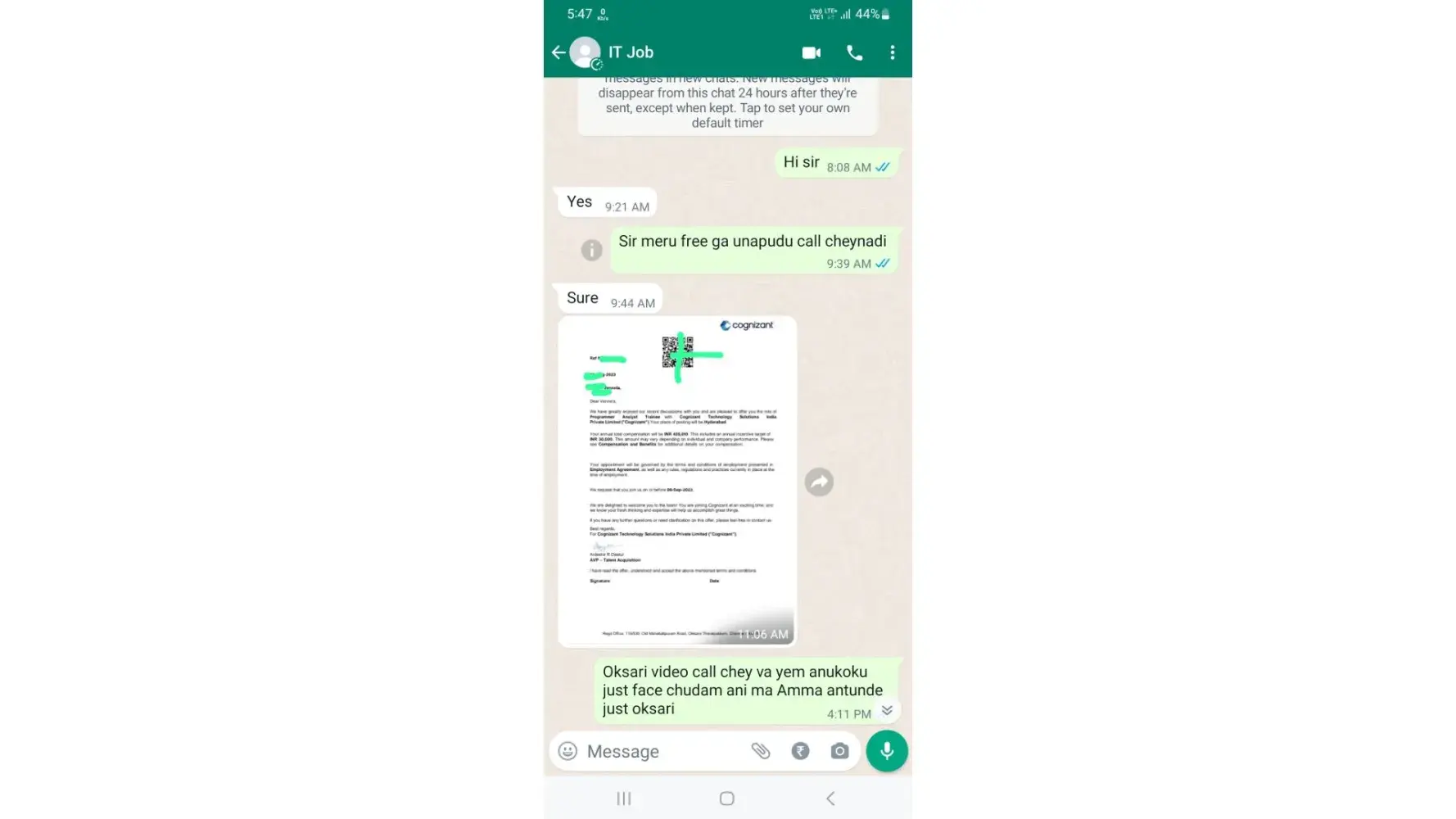 Dear cognizant HR team.