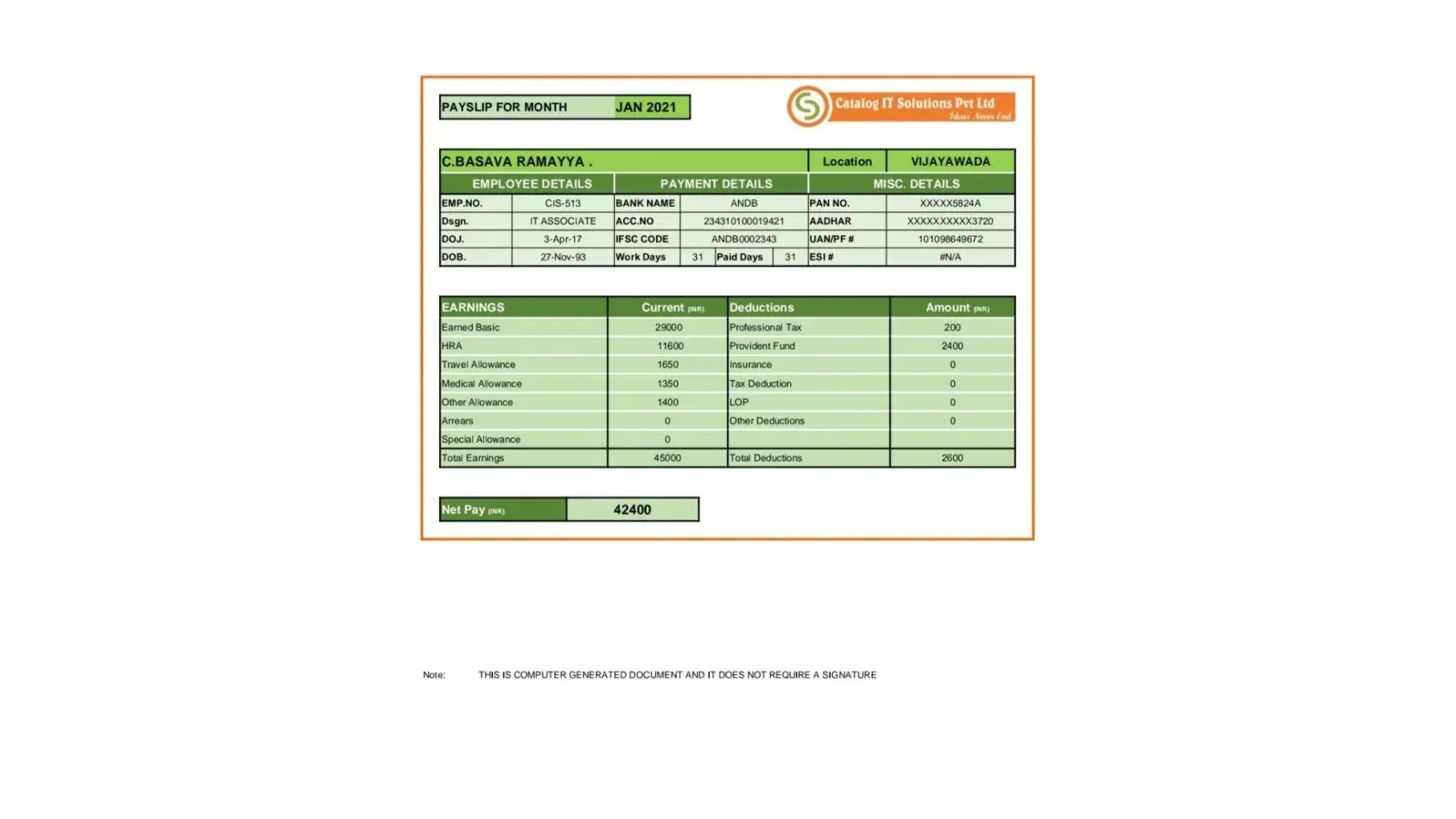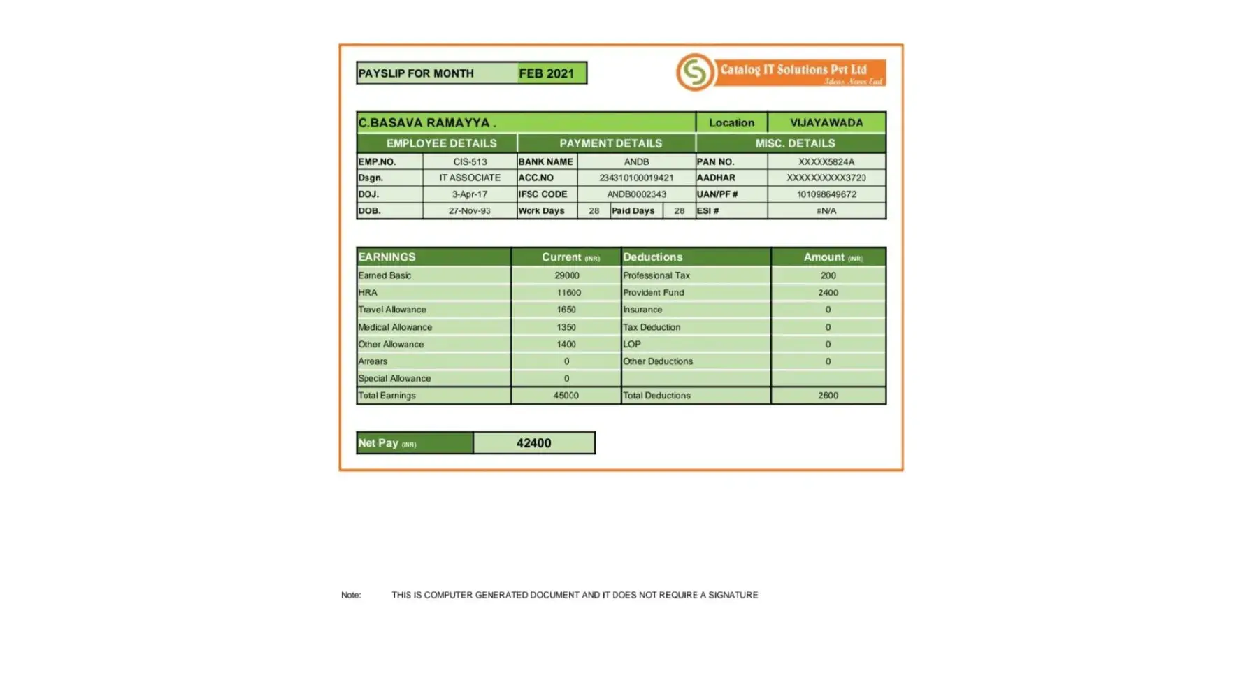 BELOW I ATTACHED HIS PREVIOUS PAY SLIP AND BANK STATEMENT
