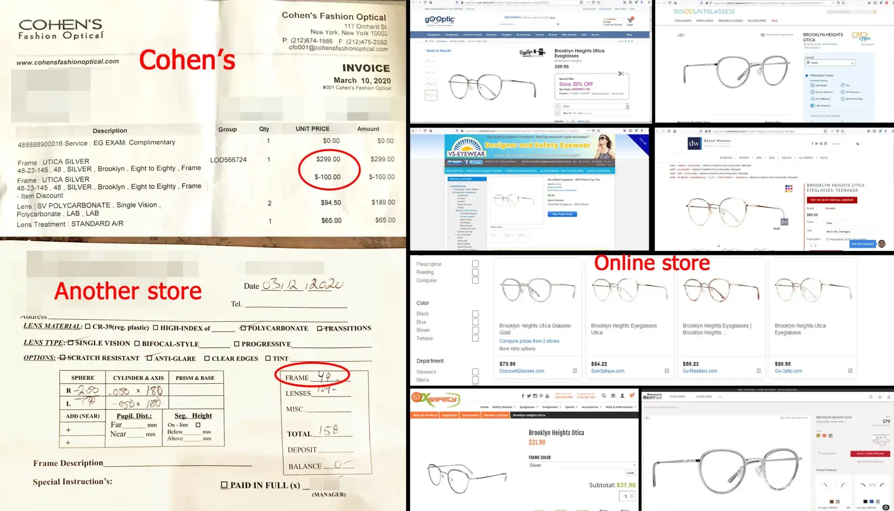 The desired resolution here is to have our bill adjusted according to our optical plan - not the plan they conveniently made up at the store so the clerks can get higher commission.