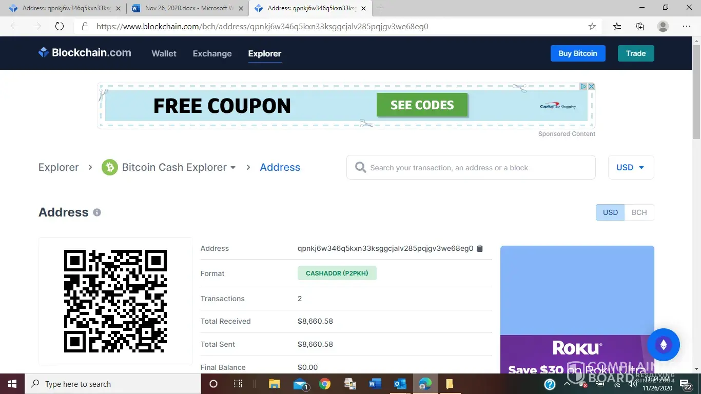1) I sent a total of $2500.00 to Coinbase from 2 different banks.