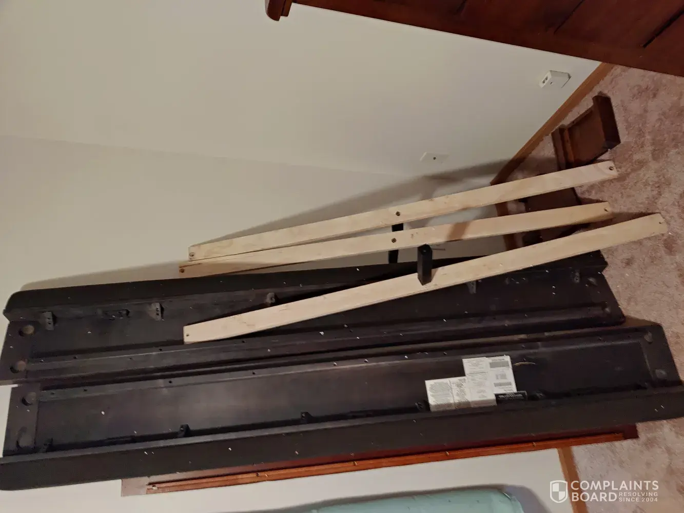4. One delivery was incomplete. Got a bedroom set that was missing a dresser that no one can seem to find and a bed missing hardware. So it is back to sleeping on the futon while they try to find the parts to my bed. In fact, they sent me an email asking for a picture of the problem... demonstrating a complete lack of empathy. I took a picture of the empty space where my dresser would be standing and a picture of my unassembled bed.