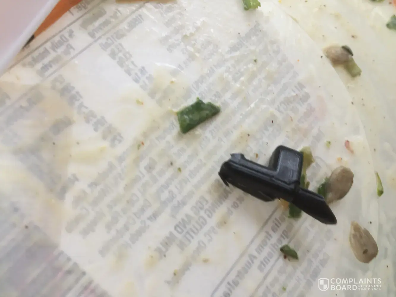 I bought a Superfood Salad Bowl today, 14 August and nearly choked on sharp plastic item that was in the salad. The broken piece of plastic has a very sharp edge that could have caused internal injuries had it been swallowed.