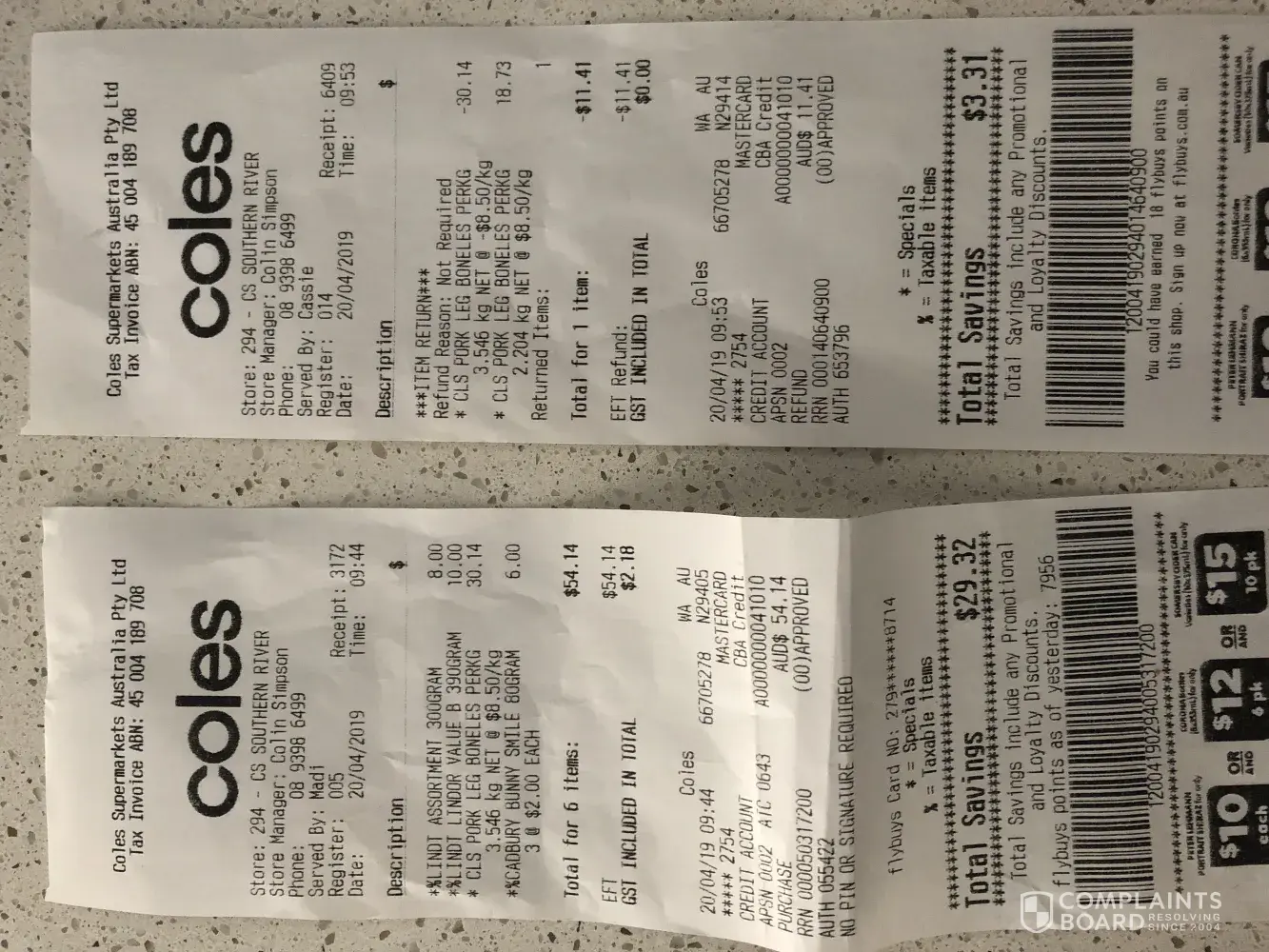I have been going to the same Coles store for years and go there for convenience plus the majority of staff are nice. I am really upset and do not believe I should have to pay for this mistake which clearly was not my fault.