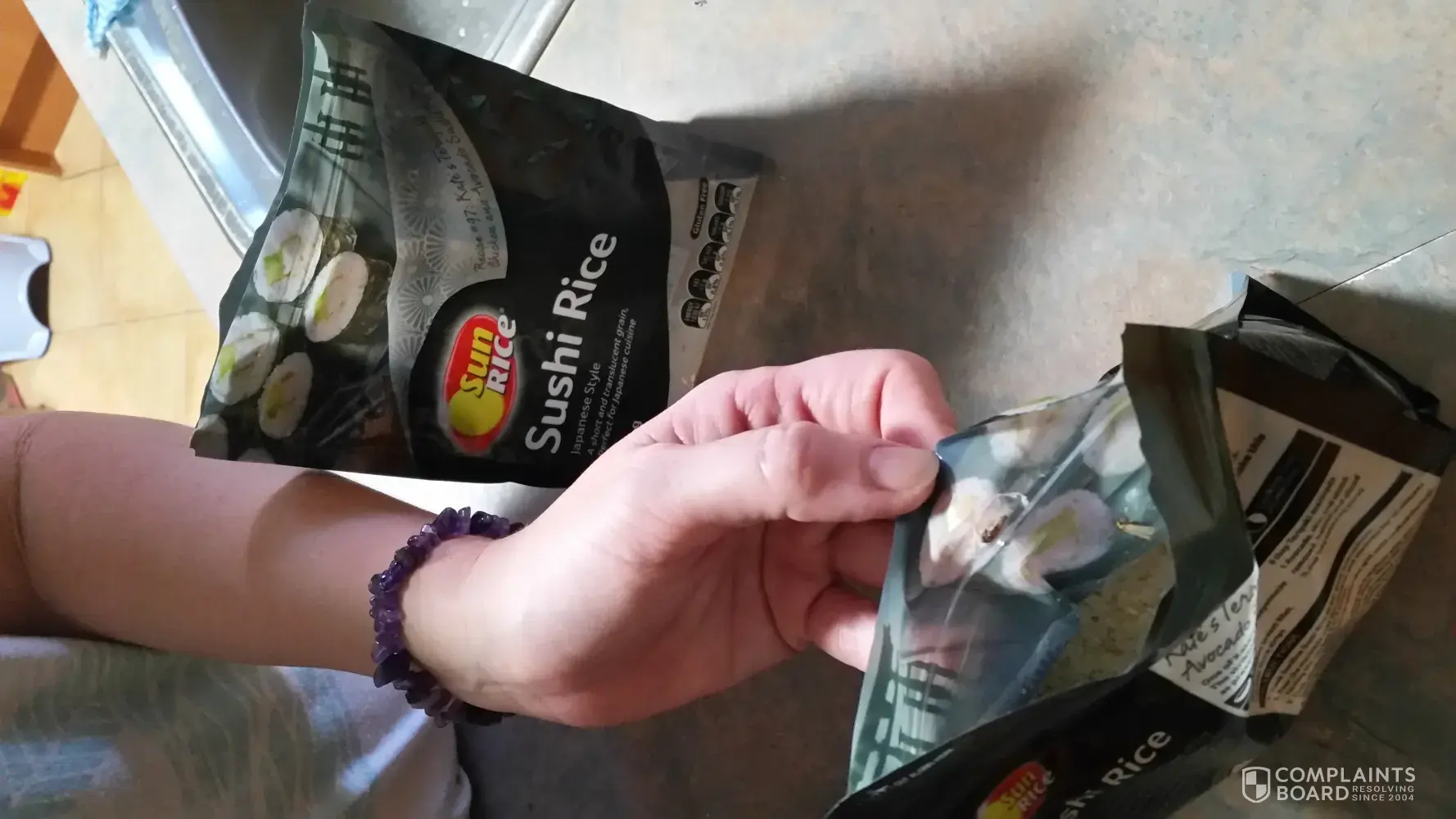 hi there, I purchased two bags of sushi rice approx two weeks ago on 08/04/18 and have been stored in my cupboard until today when I opened the new bags to make sushi for my family. Soon as I cut the bag open a flying insect flew straight out of each bag with a couple more in each bag alive plus a dead one in the rice itself. just under the reseal strip is either the faeces of the insects or a cocoon. as a chef I was completely shocked to find this. I will provide you with some details of the product and have also sent a complaint to sun rice in order for somebody to act quickly and check this product in case there are more bags.